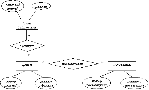 Видеобиблиотека получает новые ленты от своих поставщиков. Когда новые ленты поступают в библиотеку, необходимая информация о них фиксируется. Информация о членстве в библиотеке содержится отдельно от записей об аренде лент.