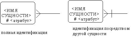 Уникальный идентификатор - это атрибут или совокупность атрибутов и/или связей, предназначенная для уникальной идентификации каждого экземпляра данного типа сущности. В случае полной идентификации каждый экземпляр данного типа сущности полностью идентифицируется своими собственными ключевыми атрибутами, в противном случае в его идентификации участвуют также атрибуты другой сущности-родителя (рисунок 2.24).