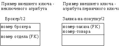 Сущности могут иметь также внешние ключи (Foreign Key), которые могут использоваться в качестве части или целого первичного ключа или неключевого атрибута. Внешний ключ изображается с помощью помещения внутрь блока сущности имен атрибутов, после которых следуют буквы FK в скобках (рисунок 2.35).