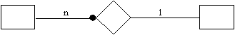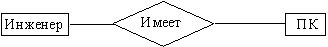 В CASE-средстве Vantage Team Builder (Westmount I-CASE) [14] используется один из вариантов нотации П. Чена. На ER-диаграммах сущность обозначается прямоугольником, содержащим имя сущности (рисунок 2.36), а связь - ромбом, связанным линией с каждой из взаимодействующих сущностей. Числа над линиями означают степень связи.