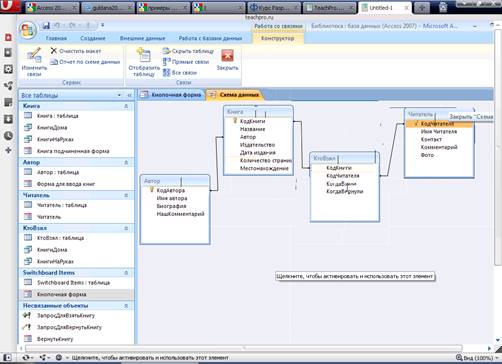 Это удобный графический инструмент, позволяющий создавать связи между определенными полями таблиц, задавать различные типы отношений, устанавливать ограничения ссылочной целостности. При этом изменения сразу применяются в базе данных (естественно, если содержащиеся данные удовлетворяют всем условиям) Полученную диаграмму таблиц и связей можно распечатать, что, несомненно, удобно для разработчика.