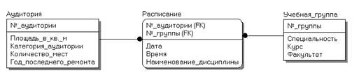 В предмотной области "Учебная точка" имеются внешние ключи (№ аудитории и № группы) в сущности "Расписание".