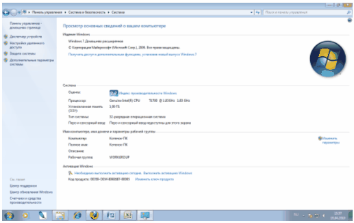 На данном рабочем компьютере была установлена ОС Windows 7(рис. 2.1).