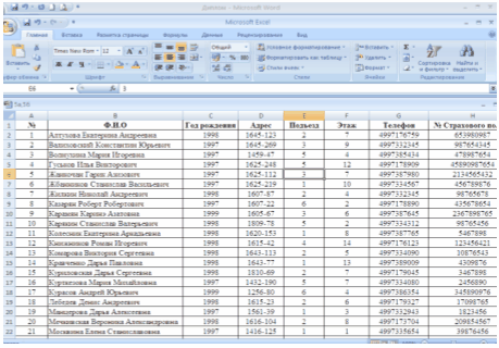 База данных – это совокупность хранимых в памяти компьютера данных, которые отображают состояние некоторой предметной области. Данные взаимосвязаны и специальным образом организованы. Вопросы сбора данных, их хранения, учета и обработки можно решить, имея систему управления списками. Термин список используется в Excel для обозначения базы данных .