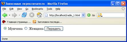 ● Зависимые переключатели (переключатели с зависимой фиксацией) — задаются элементом INPUT и представляют собой переключатели «вкл\выкл». Если несколько зависимых переключателей имеют одинаковые имена, то они являются взаимоисключающими. Это значит, что если одна из них ставится в положение «вкл», то все остальные автоматически — в положение «выкл». Именно это и является преимуществом их использования.