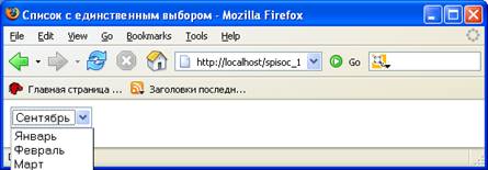 ● Точно также обрабатывается параметр $month — это обыкновенный список без возможности множественного выбора, поэтому по сути его можно представить, как набор из зависимых переключателей.