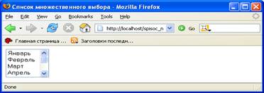 ● Меню — реализуется с помощью элементов SELECT, OPTGROUP и OPTION . Меню предоставляют список возможных вариантов выбора.