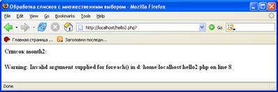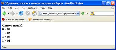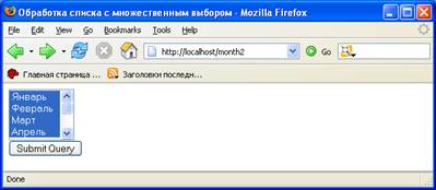 При стандартном подходе переменная $name будет содержать только последнее значение (valueN) . Однако разработчики РНР позаботились об этом: множественный список можно представить в виде массива, а обработать его элементы можно с помощью цикла foreach . Нам даже не нужно знать количество переданных элементов списка. Предварительно лишь нужно сообщить РНР , что мы будем передавать массив: