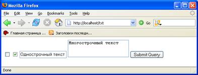● Ввод текста — реализуется элементами INPUT , если вводится одна строка, и элементами TEXTAREA — если несколько строк. В обоих случаях введенный текст становится текущим значением управляющего элемента.
