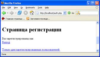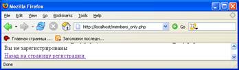 Если регистрация удалась, то посетитель может попасть на страницу для зарегистрированных пользователей, код которой реализован в скрипте members_on l y.php.