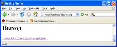 echo ‘<a href=”destroy.php”>B ыход </a><br />’;