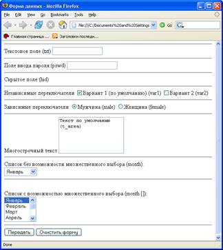 Работая с формами можно вводить текст в поле ввода, выбирать пункт меню, отмечать флажком правильный ответ, нажимать кнопку и т.д. При этом всегда ожидается от документа осмысленная реакция.