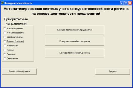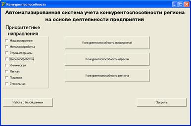 Автоматизированная система учета конкурентоспособности региона на основе деятельности предприятий