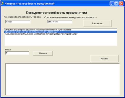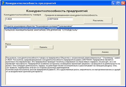 В настоящее время отсутствует общепринятая методика оценки конкурентоспособности предприятия. Вообще, в теоретическом плане проблема достижения конкурентоспособности различных объектов в условиях российской экономики находится в настоящее время почти на нулевом уровне.