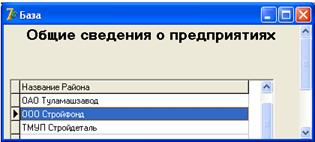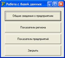 Разработанное программное обеспечение представляет собой удобный инструмент для учета предприятий региона, а так же для отслеживания динамики основных показателей деятельности предприятий. Приложение базы данных позволяет хранить, обрабатывать и отображать информацию по неограниченному числу предприятий. Программное обеспечение основано на передовых технологиях, использована архитектура клиент-сервер, что позволяет вести работу с приложением одновременно нескольким пользователям.