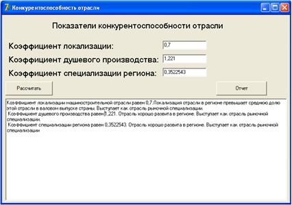 - решения о поддержке отдельных видов отраслей промышленности на основании рассчитанной комплексной оценки конкурентоспособности региона;