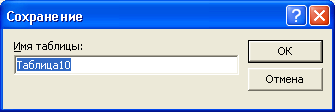 В окне Сохранение в поле Имя таблицы ввести имя новой таблицы и нажать кнопку ОК (рис.4).
