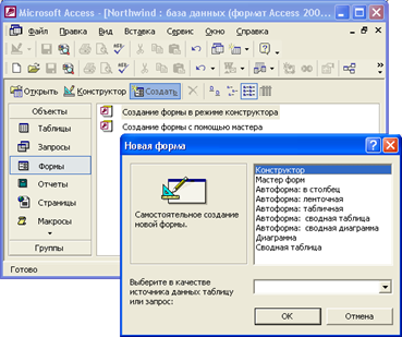 И, наконец, на панели инструментов Access расположена кнопка Новый объект. Если щелкнуть мышью по стрелке, которая находится на ней справа, и выбрать из меню объект Таблица, то откроется то же диалоговое окно Новая таблица.