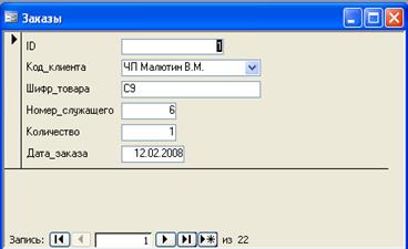 | ID | Код_клиента | Шифр_товара | Номер_служащего | Количество | Дата_заказа |