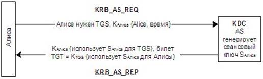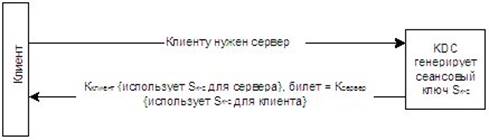 Когда клиенту нужно обратиться к серверу, он, прежде всего, направляет запрос в центр KDC, который в ответ направляет каждому участнику предстоящего сеанса копии уникального сеансового ключа (sessionkey), действующие в течение короткого времени. Назначение этих ключей - проведение аутентификации клиента и сервера. Копия сеансового ключа, пересылаемая на сервер, шифруется с помощью долговременного ключа этого сервера, а направляемая клиенту - долговременного ключа данного клиента.