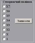 при натисканні кнопки "Записати", що знаходиться в тому ж полі, для введення створюючого поліному.
