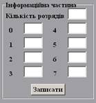 У вікнах пронумерованих від "0" до "7" вводиться задана в умові інформаційна частина, де "0"-"7" - номери відповідних розрядів інформаційної частини, починаючи з молодшого.
