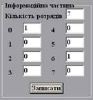 вводимо число розрядів, з якого складається задана інформаційна частина.