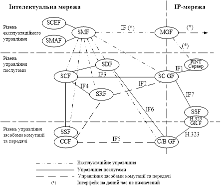 Рисунок 3 – Функціональна архітектура IN для підтримки послуг,що надаються IP-мережами
