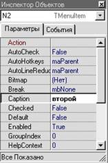 2) вызов Дизайнера Меню через свойство Items в Инспекторе Объектов;