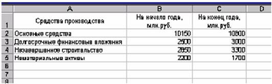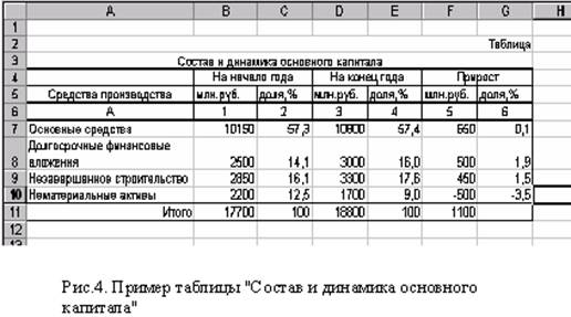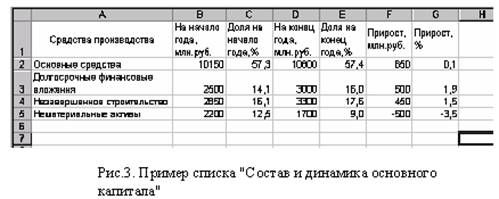 Рис.2. Пример базы данных "Состав и динамика основного капитала