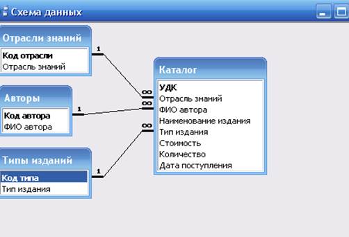 · Схему данных, отражающую, в каких таблицах содержится информация, как связаны эти таблицы, виды связей между таблицами. Указать, какая таблица является главной.