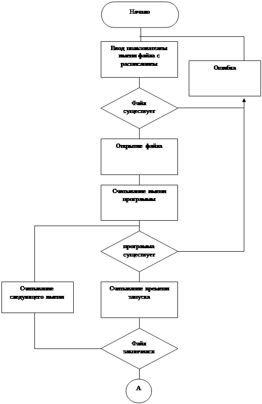 Структурная схема алгоритма программы, выполняющей запуск программ по расписанию, расписание которых храниться в файле, приведена в приложении А.