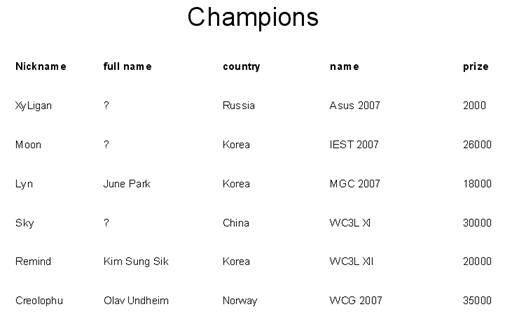 Курсовая работа: Создание базы данных "Wc3 Cybersport Data Base"