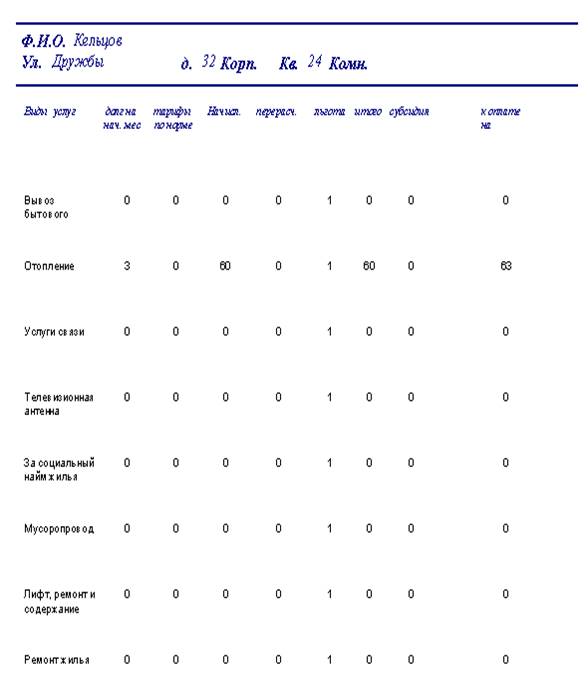 Отчет «Общ» предназначен для вывода на печать данных об оплате за коммунальные услуги.