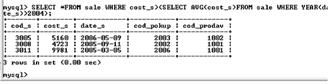 mysql> SELECT * FROM sale WHERE cost_s>(SELECT AVG(cost_s) FROM sale WHERE YEAR(date_s)>2004);