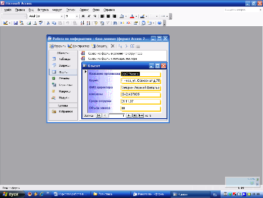 Курсовая работа: Создание базы данных в среде Microsoft Access 2002