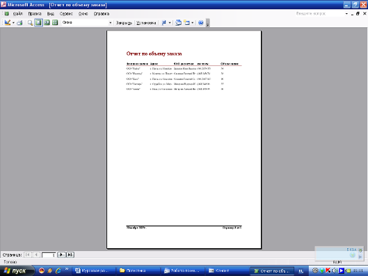 На основе полученных результатов, представленных в отчётах, маркетолог может сделать выводы, необходимые ему для принятия правильного решения относительно внедрения и правильного позиционирования товара на рынке, ведения товарной, сбытовой и рекламной политики, проведения маркетинговых мероприятий и анализа их эффективности и д.р. Так, например, из отчёта по объему заказа можно проследить какое количество товара было куплено различными предприятиями и какие тенденции можно из этого выявить. Отчёт по договорам позволяет сделать выводы о том, что, такие компании как: «Каре» и «Снегирь» являются постоянными задолжниками, при этом объем заказа у них достаточно велик и выплаты производятся с процентами по неустойке, поэтому отказываться от сотрудничества с ними пока не стоит. Отчет о клиентах позволяет менеджеру с наибольшей эффективностью работать с организациями-заказчиками, поскольку данная схема данных показывает все контакты с фирмой. Так как в Access можно задать любой отчёт, то с помощью получаемых результатов можно предугадать даже малейшие нюансы маркетинговой стратегии.