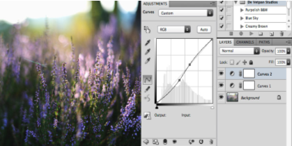 Создаем корректирующий слой с Кривыми и рисуем кривую в точности как на скрине. Это добавит несколько контраста в теневой зоне и подчеркнет световую.
