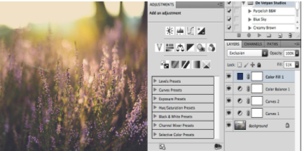 Завершающий шаг. Нам нужно смягчить фото. Создаем новый слой и заливаем его цветом R36 G53 B103 (темно-синий), режим наложения - Осветление, прозрачность 51%.