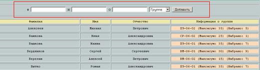 - Информационная таблица обо всех посетителях (Ф.И.О., группа).