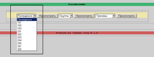 Менеджер рассматривает списки всех имеющихся групп, тренеров, и помещений. Имеются списки, отображающие свободное время для помещений и тренеров. Эта информация необходима для формирования расписания. Расписание для помещений содержит информацию о дне недели, времени начала и окончания занятия, виде занятий, группе, у которой будет проводиться занятие и тренере, который будет проводить занятие. Аналогично формируется расписание для групп и тренеров. Расписание для групп содержит информацию о номере помещения и Ф.И.О. тренера. В расписание тренеров входит информация о номере помещения и названии группы.