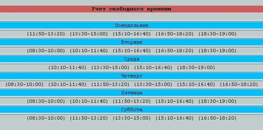 Рисунок 18 – Таблица учета свободного времени