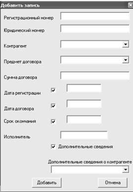 Для того, что бы иметь полную информацию обо всех заключенных с предприятиями или физическими лицами договорах необходимо вести учет договоров, где отражается информация:
