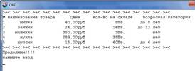 29 write(№ наименование товара, Цена, Кол-во на складе, Возрастная категория);
