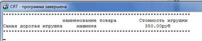 После очистки экрана выводиться на экран «Самая дорогая игрушка» среди всех пяти массивов. Рис.2