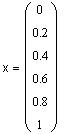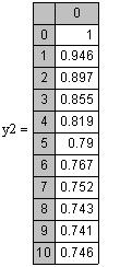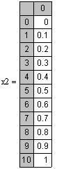 В первом столбце приведены значения x, во втором столбце - соответствующие значения приближенного решения
