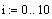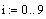 Определим диапазон изменения номера точки i=0,1, ..., 9 для вычислений с шагом h=0.1