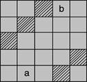 Две диагонали, проходящие через центр квадрата, называются главными диагоналями. Ломаной называется диагональ, которая, дойдя до края квадрата, продолжается параллельно первому отрезку от противоположного края (такую диагональ образуют заштрихованные клетки на рис. 3). Клетки, симметричные относительно центра квадрата, называются кососимметричными. Таковы, например, клетки a и b на рис. 3.