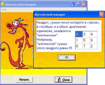 4. Оформление диалогового окна «Магический квадрат», вызываемого одноименной командой главного меню