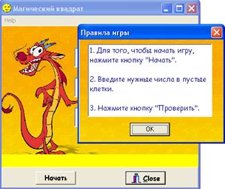 5. Оформление диалогового окна «Правила игры», вызываемого одноименной командой главного меню.